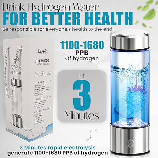 - 【High-quality health gift】Using the DASZERX hydrogen water bottle, you can get high-quality and healthy drinking water. Drinking hydrogen-rich water for a long time can slow down the oxidation reaction in the body, promote metabolism and enhance immunity. The hydrogen generator water bottle is a great gift for relatives and friends. A great choice for friends.