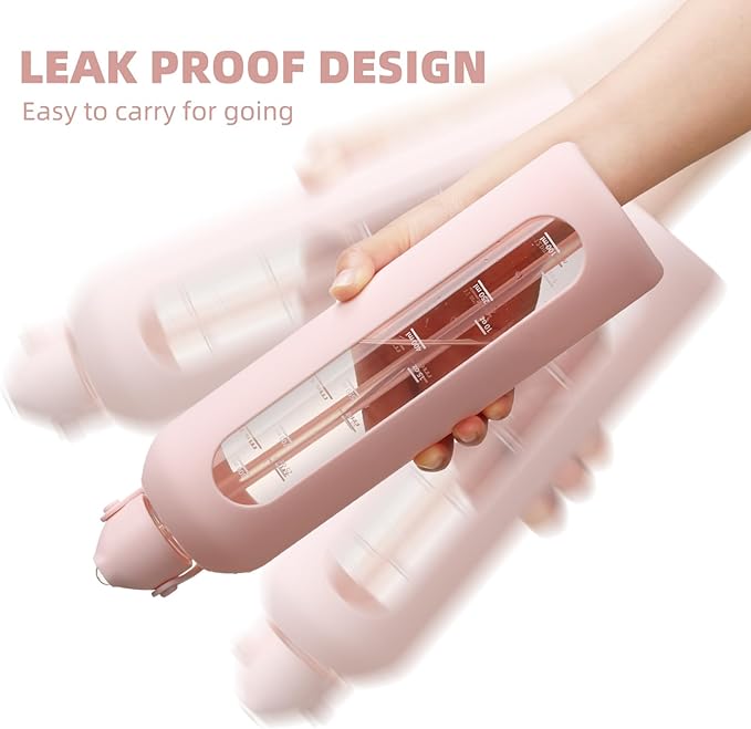 - 【GLASS WATER BOTTLES WITH TIME MARKER】 Our premium reusable glass water bottle with straw and lid features hourly time markers for easy tracking of your daily water intake. These aesthetic water bottles will help you remind you reach your goals of drinking all days.