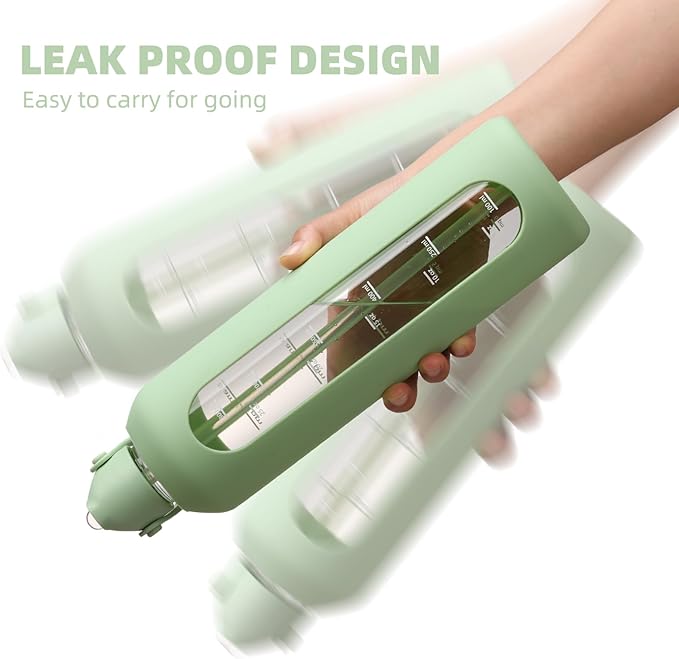 - 【HUMANIZED DESIGN DETAILS】The 20 oz glass water bottle featured with straw lid with premium handle lid, 100% leak-proof.The motivational 1 Liter glass bottles have two ways to drink water by a high quality straw and drink directly after remove the lid, which is very convenient and fast,and it also conveniently fits in cup holders.