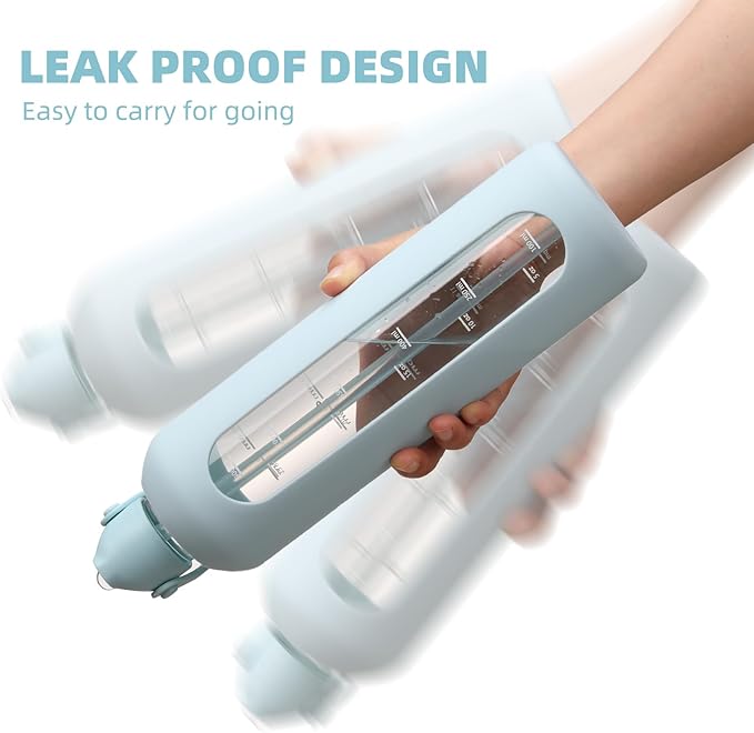 - 【HUMANIZED DESIGN DETAILS】The 32 oz glass water bottle featured with straw lid with premium handle lid, 100% leak-proof.The motivational 1 Liter glass bottles have two ways to drink water by a high quality straw and drink directly after remove the lid, which is very convenient and fast,and it also conveniently fits in cup holders.