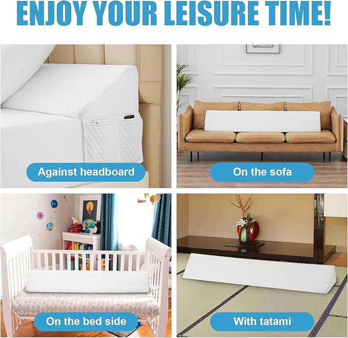 - Reliable Non-Slip Design: Featuring an anti-slip bottom, our bed wedge pillow for headboard stays securely in place, preventing any unwanted slipping or sliding. Say goodbye to the frustration of items falling off the bed and enjoy uninterrupted comfort with our innovative non-skid design.