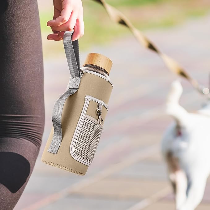 48 oz Sports Borosilicate Glass Water Bottle with Bamboo Lid with Neoprene Sleeve