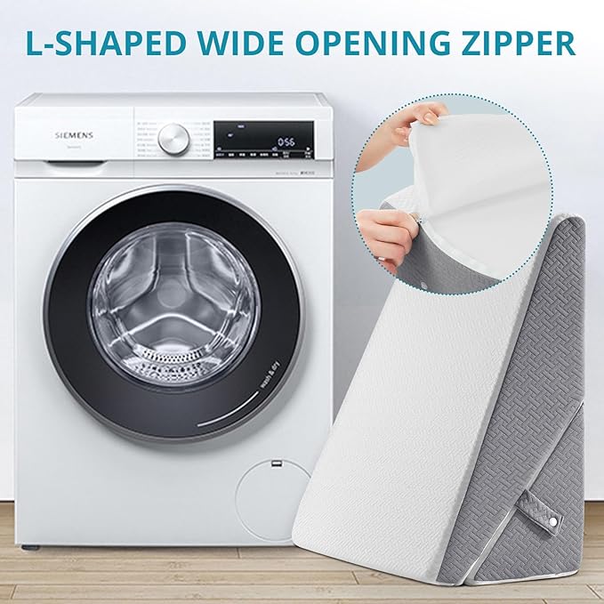 - REMOVABLE & WASHABLE COVER: The SASTTIE incline pillow for sleeping comes with a cover made of premium air layer fabric, ensuring maximum breathability and comfort. Featuring an L-shaped wide-opening zipper, the cover is easy to remove and machine wash, keeping your wedge for bed hygienic and fresh. Enjoy the convenience of maintaining a clean sleep environment with minimal effort.