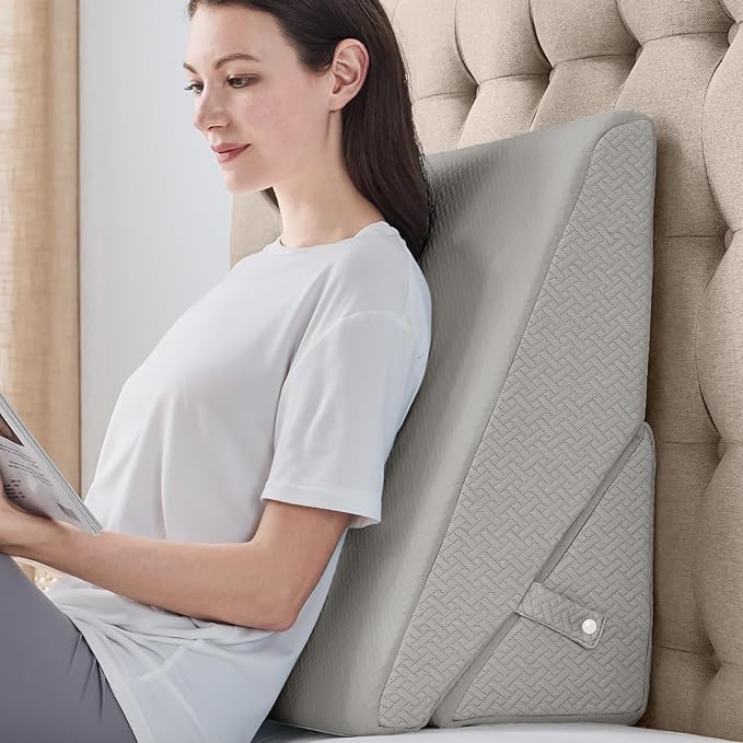 Sasttie Wedge Pillow for Sleep Apnea, 10 Inch Adjustable Bed Wedge Pillow for Back Pain, Acid Reflux Relief, Memory Foam Triangle Pillow Wedge for Sleeping, Post Surgery, Knee Elevation, Light Grey