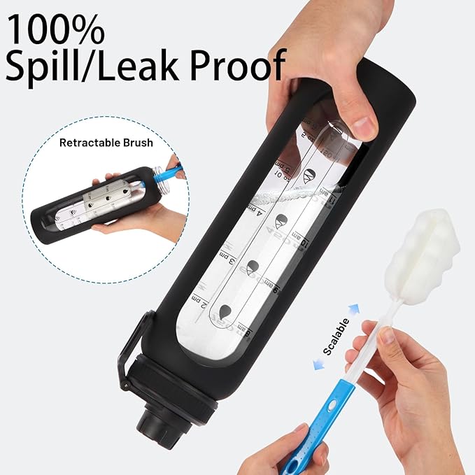 - 【Large Capacity】The bottle has a capacity of 34OZ/1L, with marked graduations up to a maximum of 26 OZ/750ML, featuring time markings