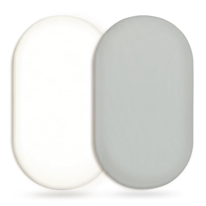 GRSSDER Stretchy Ultra Soft Fitted Bassinet Sheet 2 Pack, Universal Fit for Bassinets Baby Cradle Moses Basket Oval Rectangle Mattress Safe and Snug, Jersey Bassinet Sheets for Girls, White/Gray