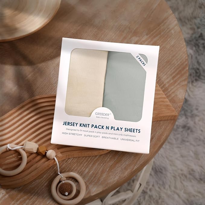 - Ultra Soft & 4-way Stretch: Made of high quality soft stretchy jersey knit fabric. GRSSDER mini crib sheets offer a breathable, sweat-absorbent tee shirt like feel for exceptional comfort, providing your little ones a safe and to stay in place throughout the day.