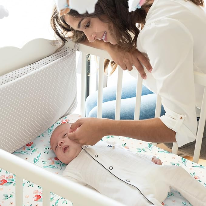 Pack n Play Fitted Sheet. 2 Piece Mini Crib Sheet. Elastic Playard Sheet. Portable Sheet Set. Elastic Convertible Playard Set. Compatible with Graco Pack n Play (Pink Flower)