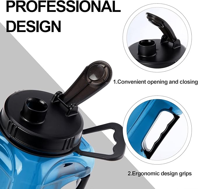 Half Gallon Water Bottle Large Sports Water Bottle Jug With Times to Drink Marker BPA Free Reusable for Fitness Gym Outdoor 64oz Blue
