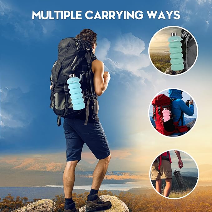 - [PORTABLE & REUSABLE] Our Collapsible Silicone Water Bottle is Lightweight and Durable, Equipped With an Aluminium Alloy Carabiner, which Makes It Easy to Take Out. Our Reusable Water Bottle is Good for Hiking, Climbing, Traveling, and Many Outdoor Sports.