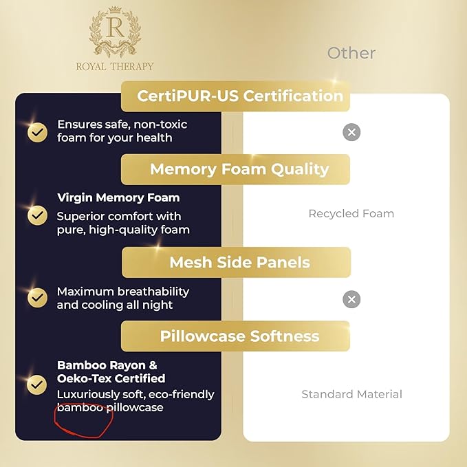 Royal Therapy Memory Foam Pillow, Queen Pillow Neck Pain Relief, Pillow for Neck and Shoulder Pain, Neck Pain Pillow, Side Sleeper Pillow, Cervical Neck Pillow, Neck Pillow Sleeping