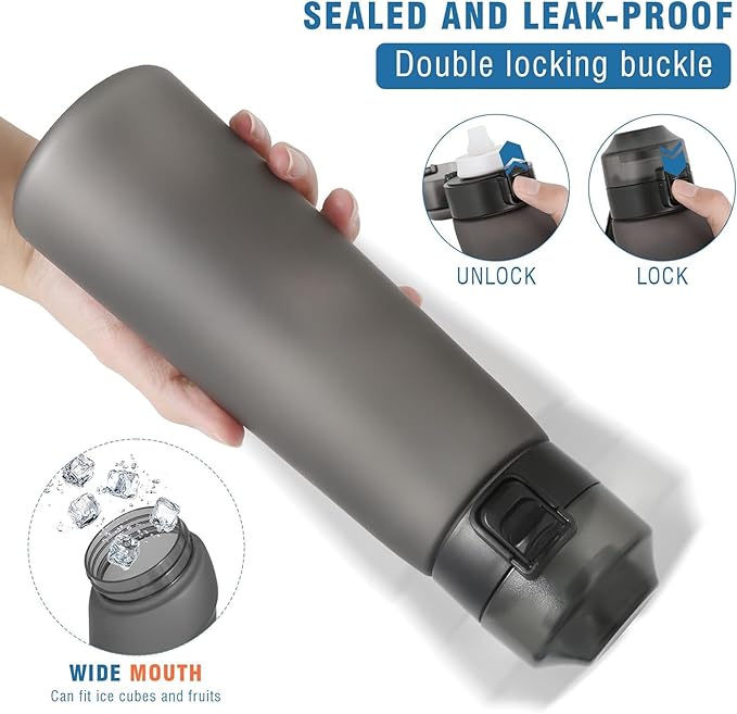 - ๐ธ๐น๐ท๐๐๐๐๐๐๐ ๐๐๐ ๐ ๐๐๐๐๐๐:Silicone handle, easy to carry; 650ml large capacity, one-button opening, with locking ring; built-in straw to prevent choking; large diameter bottle mouth, convenient for adding ice cubes or other ingredients to drinks, convenient for adding water and cleaning