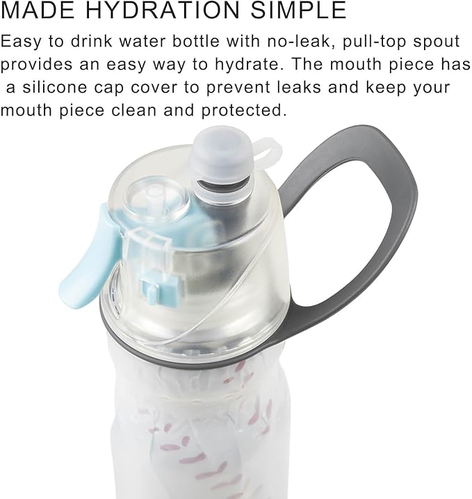 - Easy to Clean: The sports water bottle with spray mist is easy to clean with wide mouth design. What's more, the silicone drinking spout can pullout to wash, make the dirt nowhere to hide. ( Pullout skill: Pull up and shake from side to side )