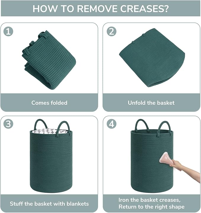 - Basket with Handles: Our large toy basket comes with two handles, making it easy to move from room to room. These rope laundry hampers are safe for both kids and pets. They are soft, making them foldable and easy to store