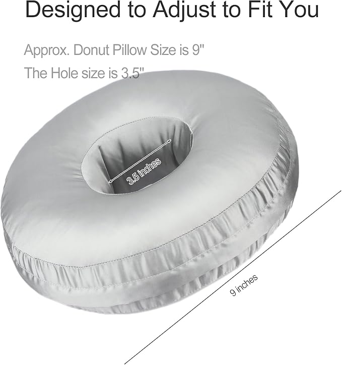 Silky Ear Piercing Pillows with Holes Removable Pillowcase Washable Donut Pillow for Ear Pain Side Sleeping Cartilage CNH Pressure Sore Tinnitus Headphones Relief Guard Protector Gray