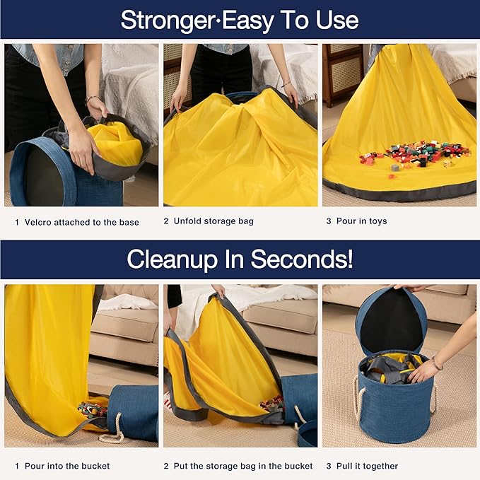 - Made To Last-Our toy storage basket made of durable oxford cloth, The play mat adopts waterproof material, you can rest assured that the child can use it in the room, it can also be used in your outdoor camping, beach, or picnic in the park.