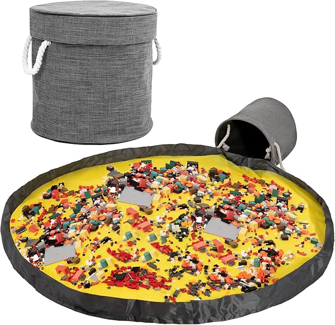 EXQ Home Toy Storage Basket and Building Bricks Toy Play Mat for Kids Rooms- Organizer Storage Organizer for Toys, Playroom Canvas Bag Gift for Boy/Girls (Grey 13" x12")