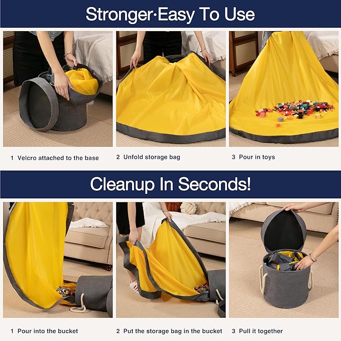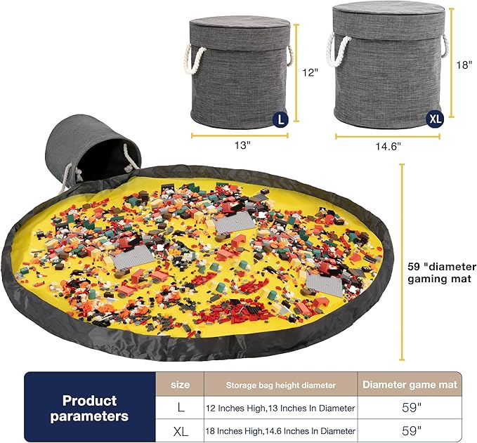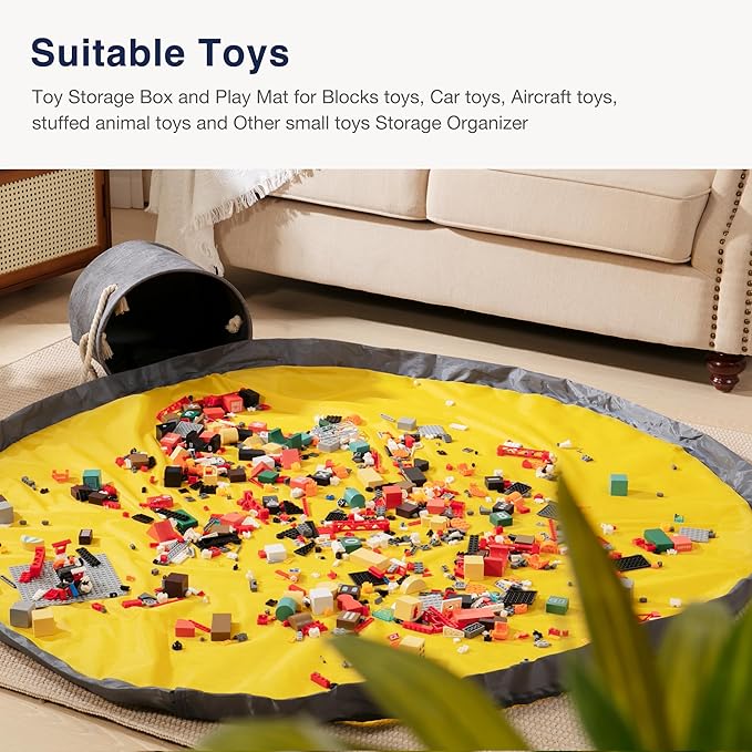 - Save Your Floors From Toy Clutter-This floor storage basket has an 59" integrated play mat that prevents your kid's toys from spilling off. Saves you precious time on cleanup.
