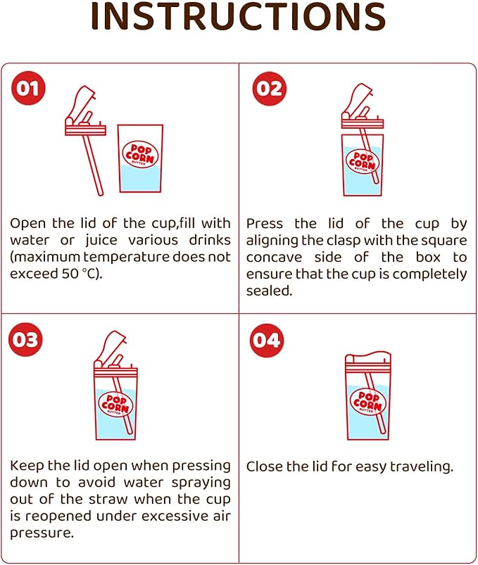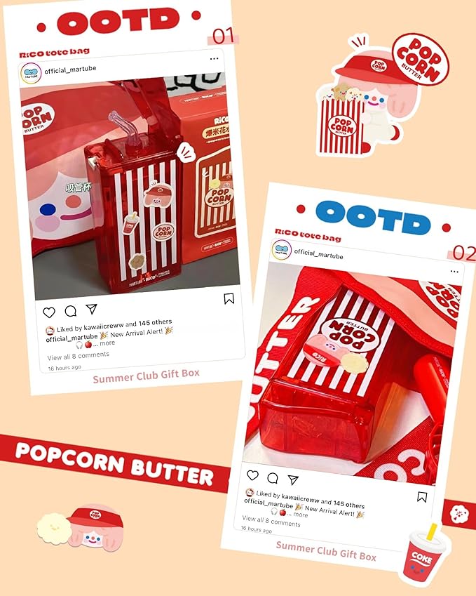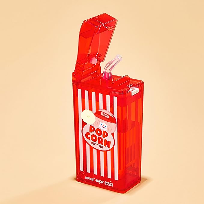Cute Popcorn Water Bottle with Straw, Portable Water Bottle with Leak-Proof, Pop-Up Spout Cover for School, Sports, Hiking, Camp & More(8.45 oz)