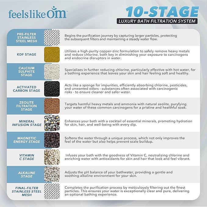 - FEELS LIKE OM PROMISE: At Feels Like Om, we stand by the effectiveness of our bath water filter. If you experience any issues with our product, we offer a no-questions-asked refund or replacement. Contact us through Amazon for quick and easy assistance. We're committed to ensuring 100% satisfaction, providing you with not just cleaner water, but a purer, more rejuvenating bathing experience.