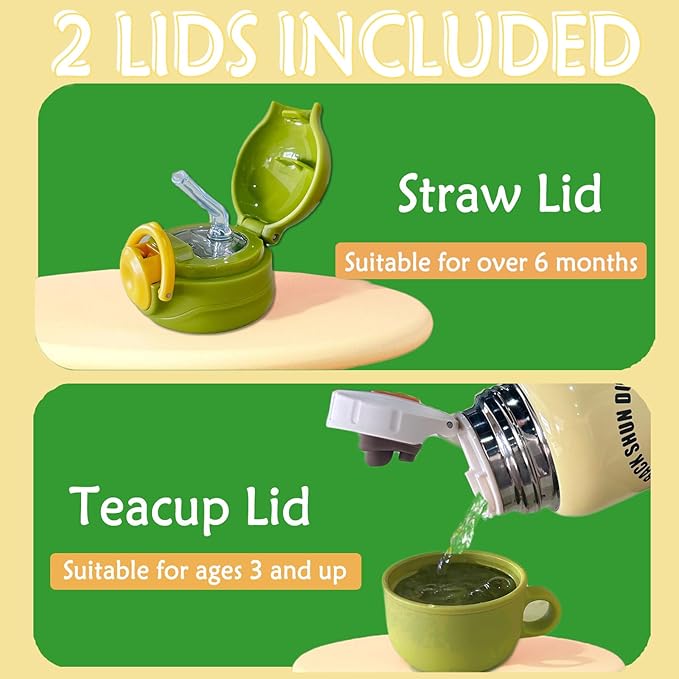 - 【HUMANIZED DESIGN】Portable Leakproof 15oz Water Jug has a built-in silicone seal on every cap, which prevents the liquid from splashing leakage and dust. Thermos bottle one of lids feature a portable straw design, allowing for easy opening with a simple one-touch button and a secure safety lock for closure.Also wide mouth opening is ice-cube friendly.