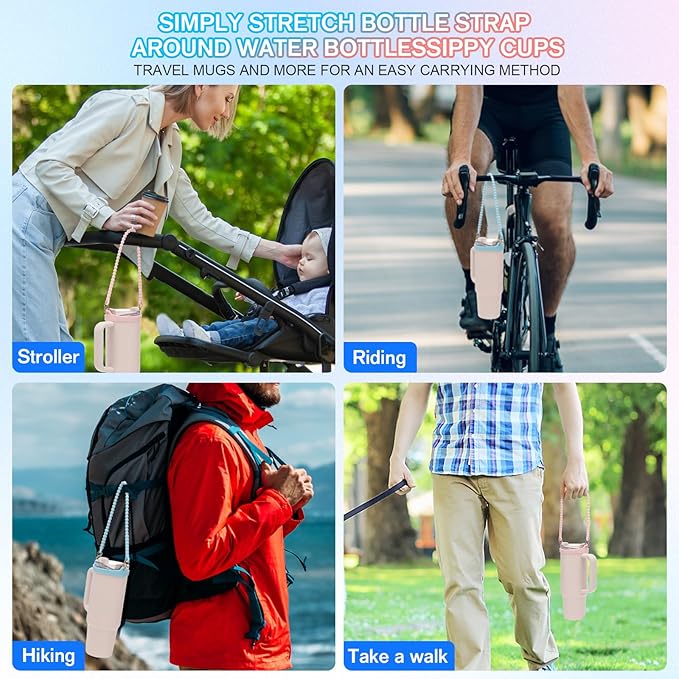 - Perfect Fit:Our soft and flexible water carrier strap accommodates most 8-40oz water bottle, and compatibility with Stanley cups, cirkul water bottle. Ensuring a secure fit and no more worries about accidental drops