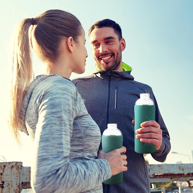 - π STYLISH & PORTABLE: Take it everywhere! Our sleek design makes the glass water bottle has an ideal travel body and elegant appearance. Soft neoprene sleeve with handle offers secure grip and helps protect against breakage.