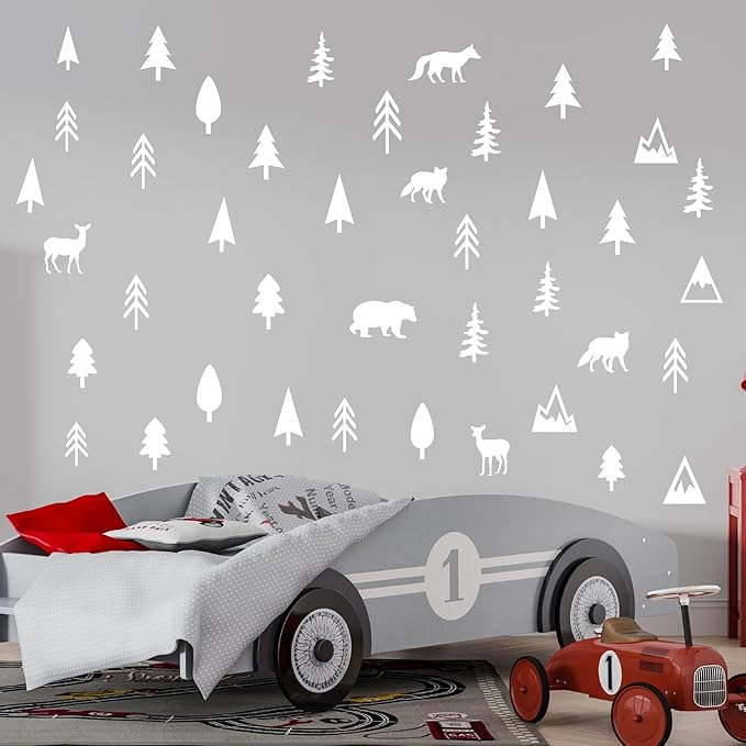 - Pine Tree Wall Decals: peel and stick, easily removable without damaging the wall.