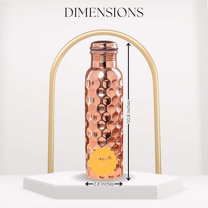 Pure Copper Metal Water Bottle - 32 oz - Indian Handmade Ayurveda Healing Drinking Water Bottle for Travel, Hiking, Gym, Office, Outdoor - Glossy Honeycomb