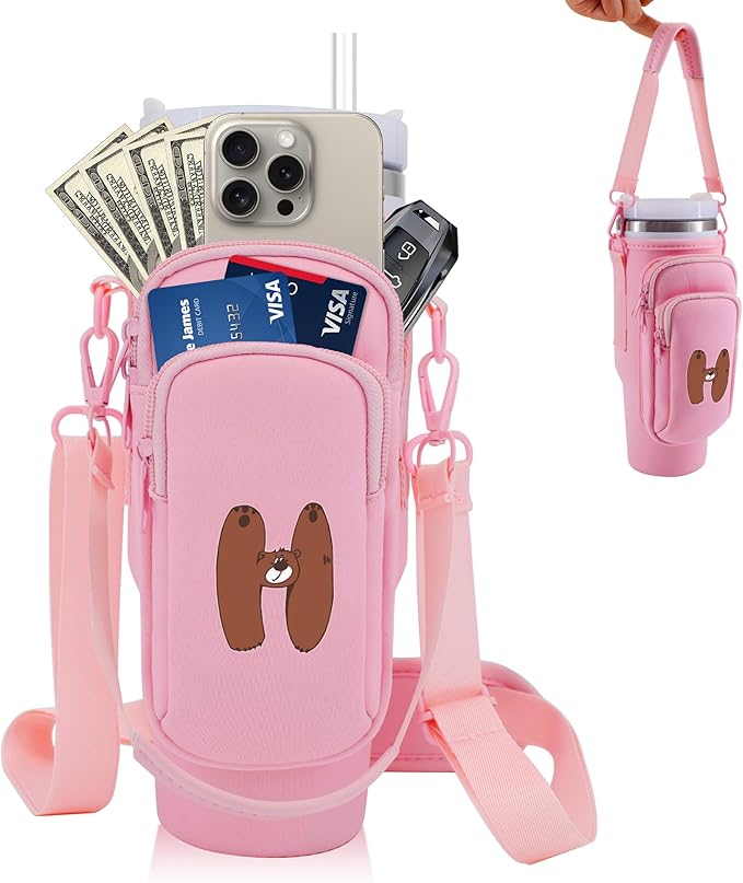 Water Bottle Carrier Bag with Phone Pocket for Stanley 40 oz Tumbler Neoprene Water Bottle Holder Pouch with Adjustable Strap Bollus with Straw Cover & Carabiner for Stanley Cup Accessories
