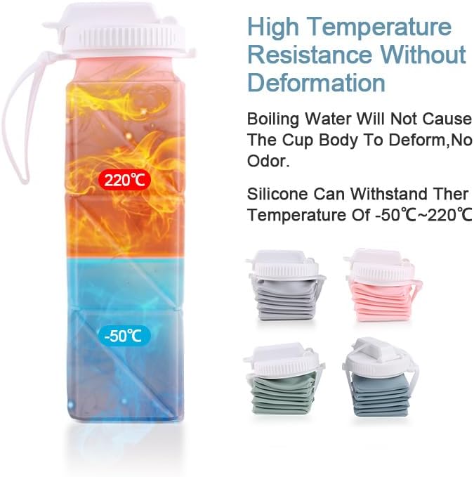 - SUITABLE FOR ALL TEMPERATURES: Perfect for both hot and cold drinks, this silicone portable water bottle is versatile enough to accommodate your favorite beverages, whether you're in the mood for a cool refreshment or a warm drink.