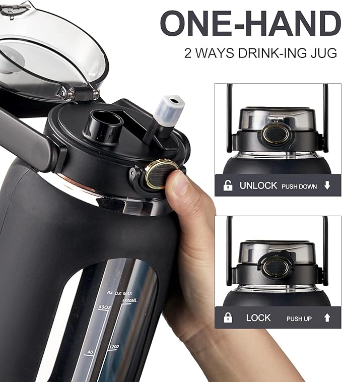 - HALF GALLON LARGE CAPACITY: Our half gallon water bottles can hold up to 64oz of water. Large capacity ensures you enjoy one full water bottle / jug without having to refill it frequently. Featured with measuring scale help you check the actual amount of water intake easily and clearly. Wide-mouth opening is easy to fill with ice cubes and clean.