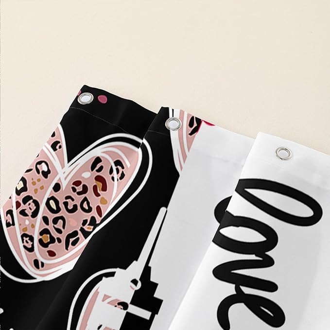 AILONEN Heart Love Shower Curtain for Bathroom, Black and White Eiffel Tower Print Bath Curtain,Pink Hearts Girls Women Shower Curtain Decoration Waterproof with 12 Plastic Hooks, 48" W*72" H