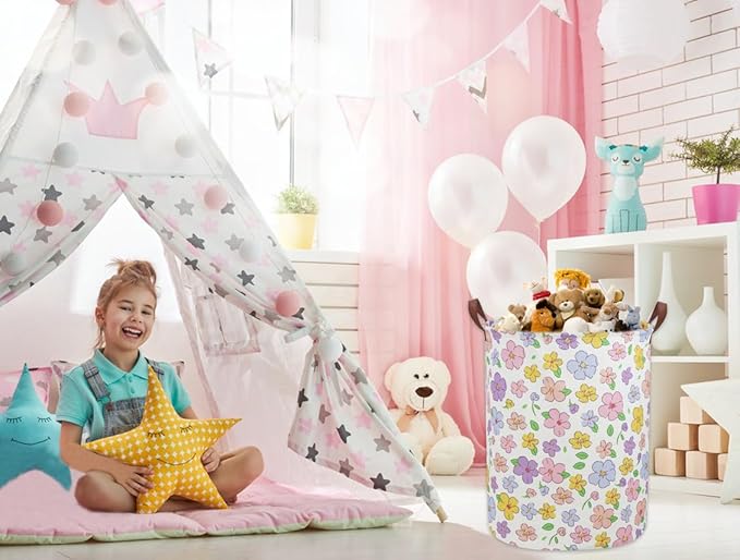 Kids Laundry Hamper,Flower Laundry Basket Collapsible Girls Storage Baskets for Home Decor,Office,Toy Organizer,(Flower)