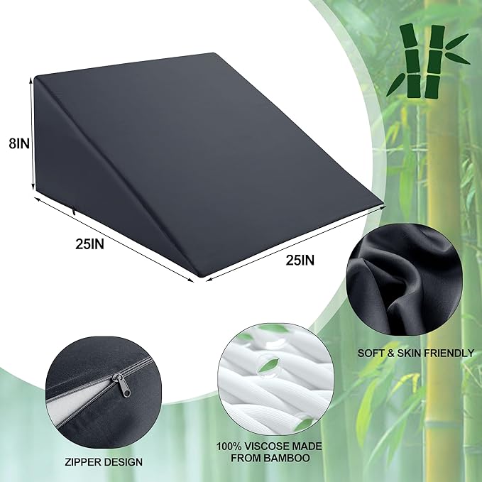 HOMBYS Bamboo Viscose Bed Wedge Pillow Cover with Zipper, 100% Viscose Made from Bamboo, Soft, Cooling, Breathable Wedge Pillowcase Sweat-Absorbent Pillowcase for Summer, 25"x25"x8", Dark Grey
