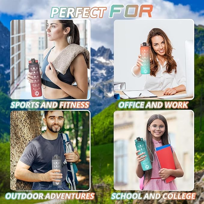 - 1L Capacity for Sustained Hydration: Enjoy ample hydration with our 32oz water bottles with straw, ensuring you stay hydrated throughout your day. Perfect for those who need an on-the-go hydrating companion.