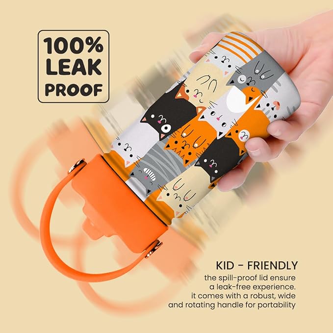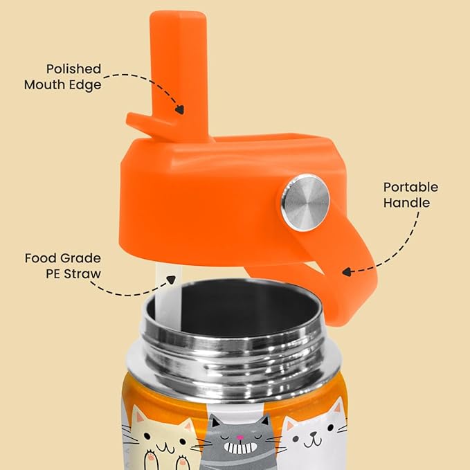 Cat Water Bottle - Kids Water Bottle with Straw Lid - 12 Oz Insulated Stainless Steel Water Bottles for Toddlers Kid Boys Girl - Travel Cup for School Sports