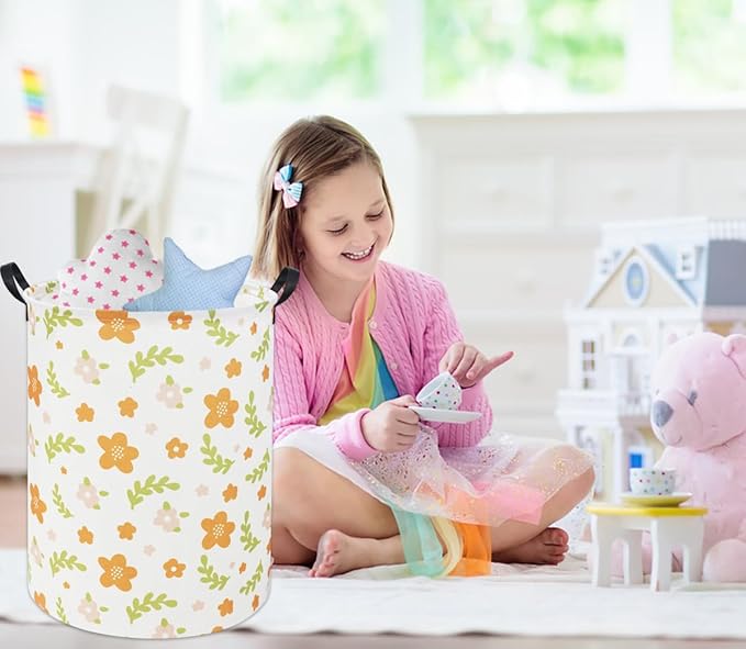 Flower Kids Laundry Basket Baby Hamper Toy Storage Bin for Boys Room Decor Baby Nursery Hamper Gift Baskets for Bedroom Bathroom(Yellow Flower)