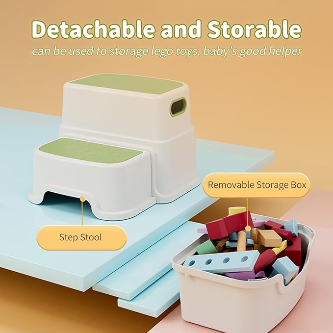- 【Space-Saving】With an overall height of 9.25 inches, the top step measures 7*10.63 inches, and the bottom step measures 5.11×9.53 inches. Its compact design allows easy placement in tight spaces like the bathroom and toilet. The handle design makes it effortless for your child to move around.