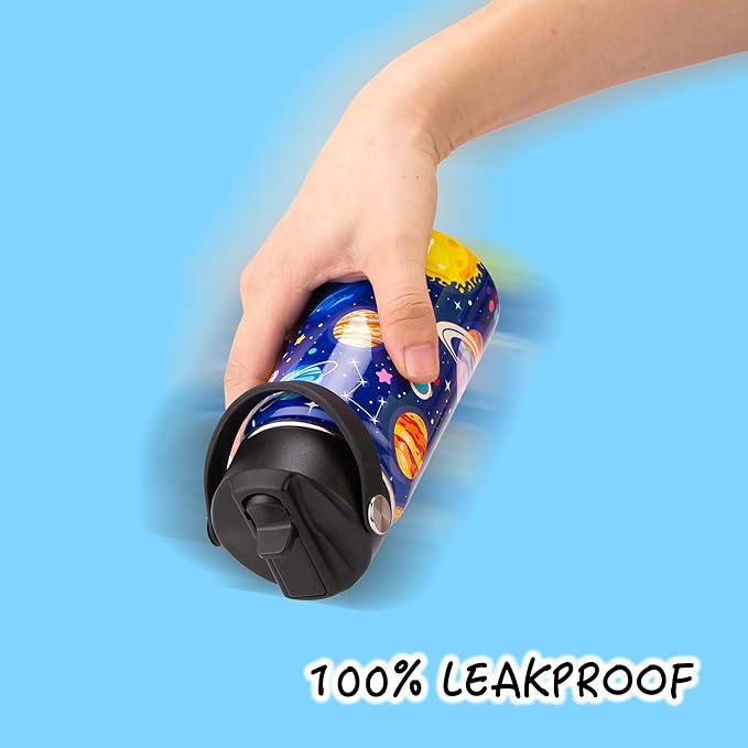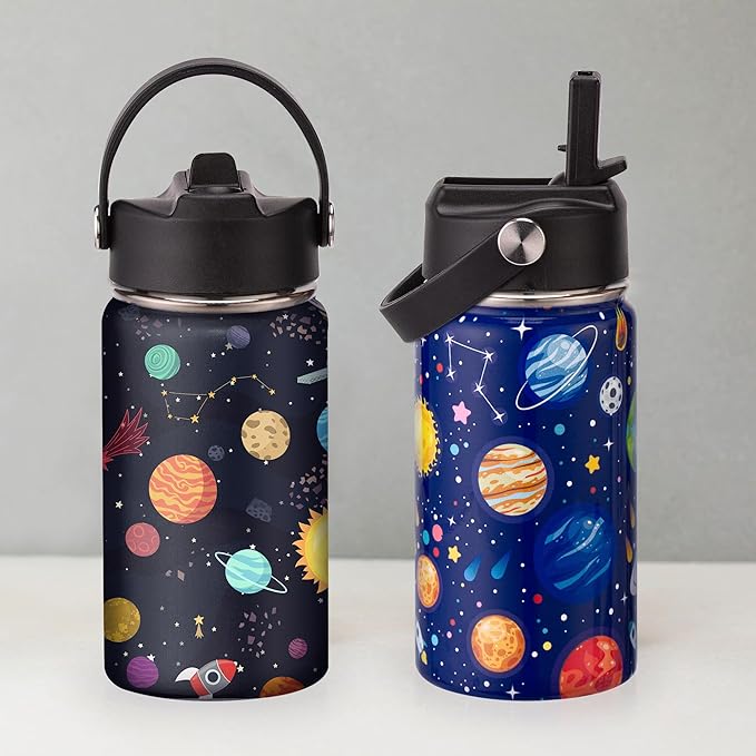- 【2 Pack Set Reusable Bottles Set】Fun Space patterns designed specifically for children, adding fun to drinking water and helping them to drink more water.