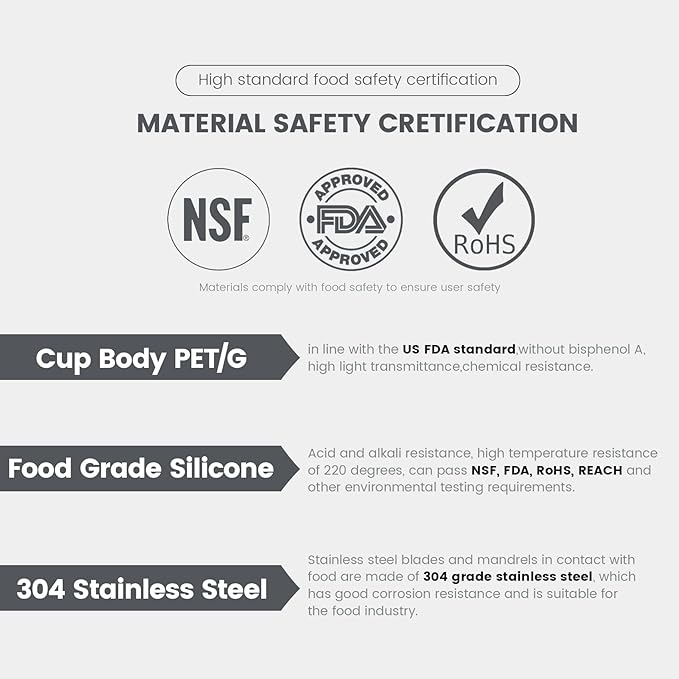 - ✔️Comprehensive Food Safety Certification: The materials of Hurricup protein shaker used comply with food safety regulations. Comprises PETG Material compliant with US FDA standards and Food Grade Silicone that meets NSF, FDA, RoHS, and REACH testing requirements.