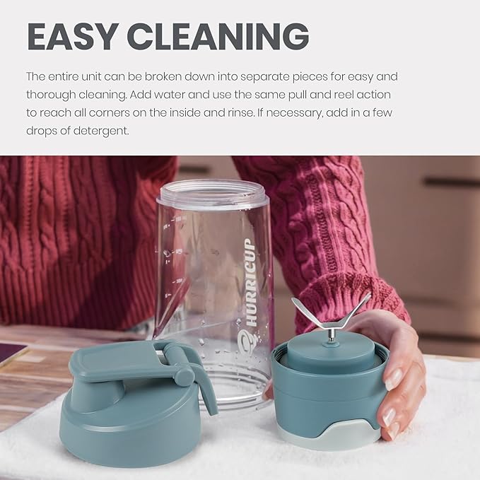 - ✔️Ultra-Hygienic & Easy to Clean: The Hurricup protein shake blender can be disassembled for thorough cleaning. Just add water, pull and reel to rinse all corners. Can include detergent if required.