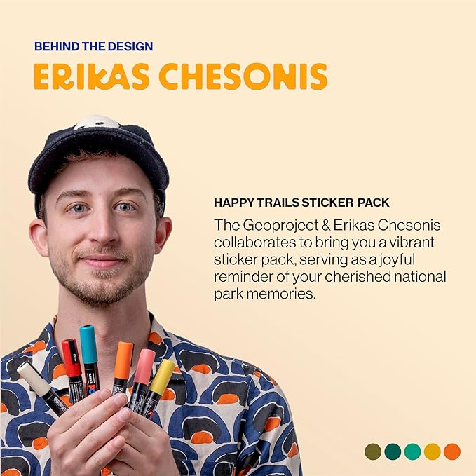 - HAND ILLUSTRATED PARKS: Each National Park has been hand-drawn by the talented artist Erikas Chesonis, giving your bottle a vibrant and playful aesthetic as you continue to add more stickers to your collection.