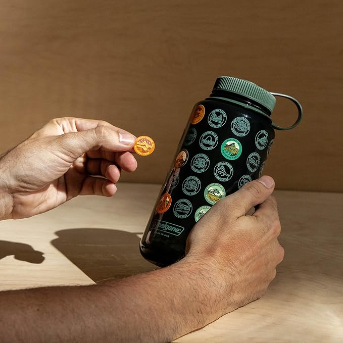 National Parks Plastic Water Bottle with Stickers Kit, Light Weight Adventure Bottle, Waterproof Stickers for Water Bottle, Wide Mouth Lid Bottle 32oz