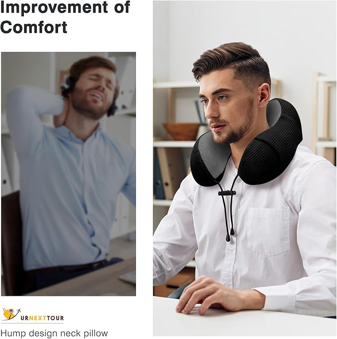 - Perfect Support with Ergonomic Design: urnexttour airplane neck pillow has unique curves and shape design that can naturally fit your neck and back; it offers 360°support helps you keep your neck and head upright to alleviate pressure and without getting any soreness during travel. The durable rope lock could be used to adjust the angle and the size of the pillow to meet different neck size requirements. It will be your best sleep partner for travel.