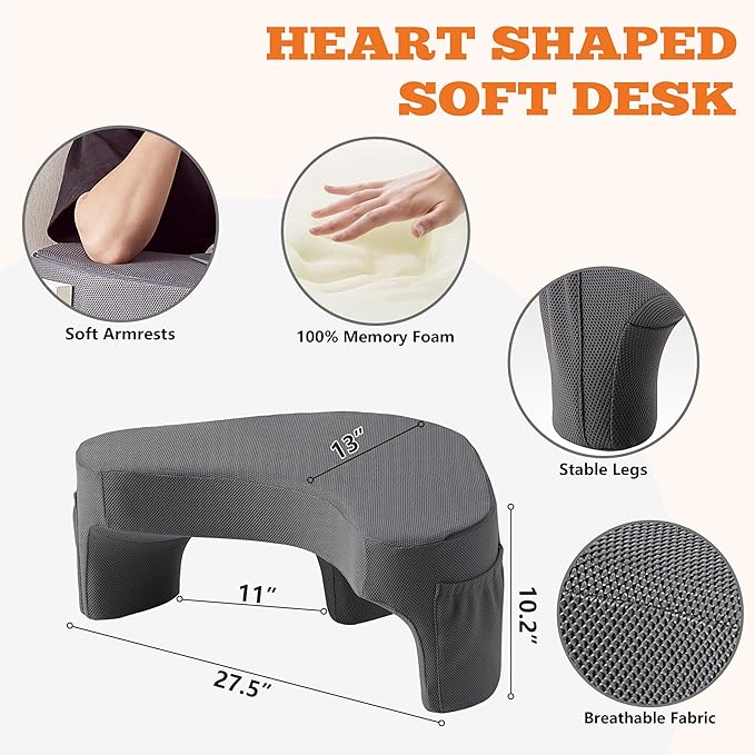- UNIQUE DESIGN: Comehealthy design team focuses on creating comfortable, practical, and healthy lap desk pillows; this heart shaped reading pillow provide wider desktop which can easy place laptop, iPad, book steadily; three extra pockets on the front and two sides keep books, cell phone, Switch, Steam Deck within reach; pillow edges fits the curve of the arms and elbows, reducing arms and elbows fatigue and providing a comfortable experience.
