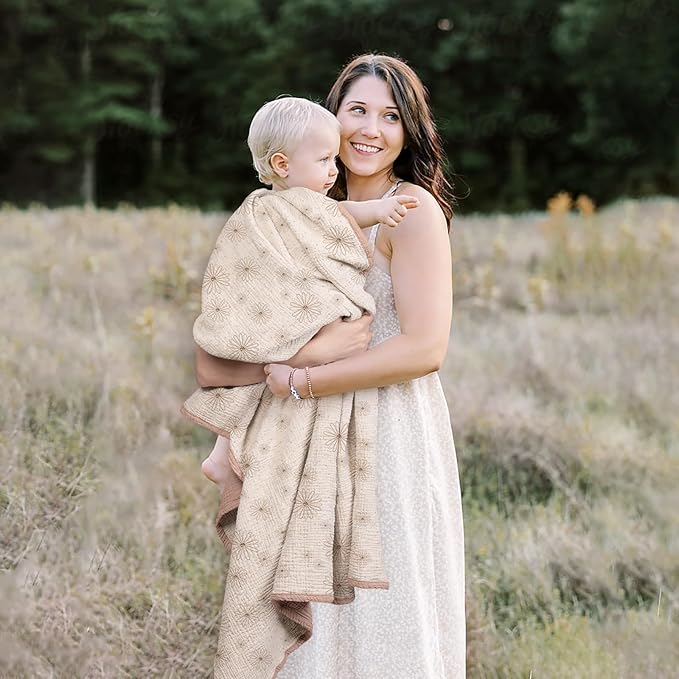 Lulu moon Muslin Quilt Blanket, Crib Blanket for Baby and Toddler,47x47 Inches(Sand Daisy)