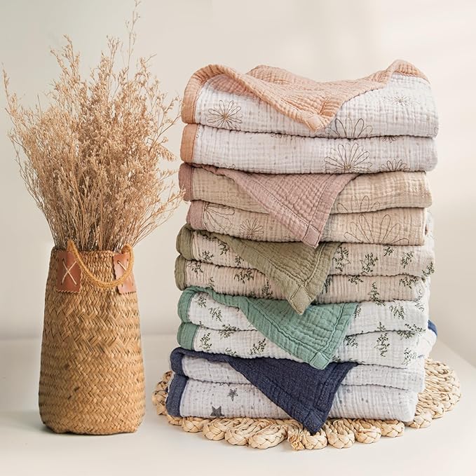 - EASY TO CARE: Our muslin baby blanket is machine washable and tumbles dry, saving you time and giving you more time to play with your baby. The texture is more evident and beautiful after cleaning. Please note that the tolerance for muslin cotton material is approximately +-1inch