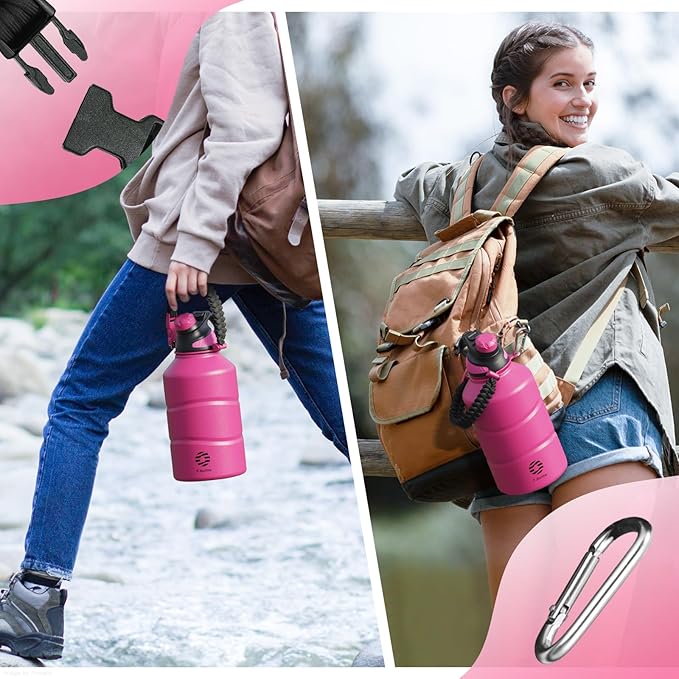 - Water bottle easy to carry: Fjbottle water bottle with a paracord handle and a handle ring.The paracord handle provides a comfortable and secure grip,you can also attach it to your backpack or bike with a carabiner for added outdoor convenience.