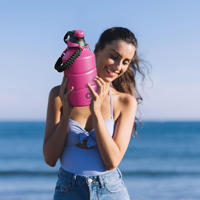 Insulated Half Gallon Water Bottle 64oz with Magnetic Lid,Stainless Steel Double-Wall Vacuum Leak Proof Sports Insulated Jug with Paracord Handle, Keep Water Hot & Cold for Outdoor,Gym